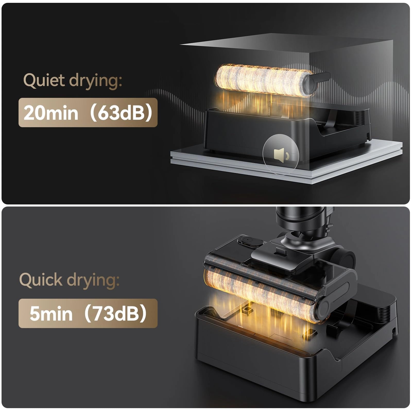 Select the 5-minute Flash Drying for rapid readiness, or switch to the 20-minute Quiet Drying for a low-noise cycle that won't disturb your rest.