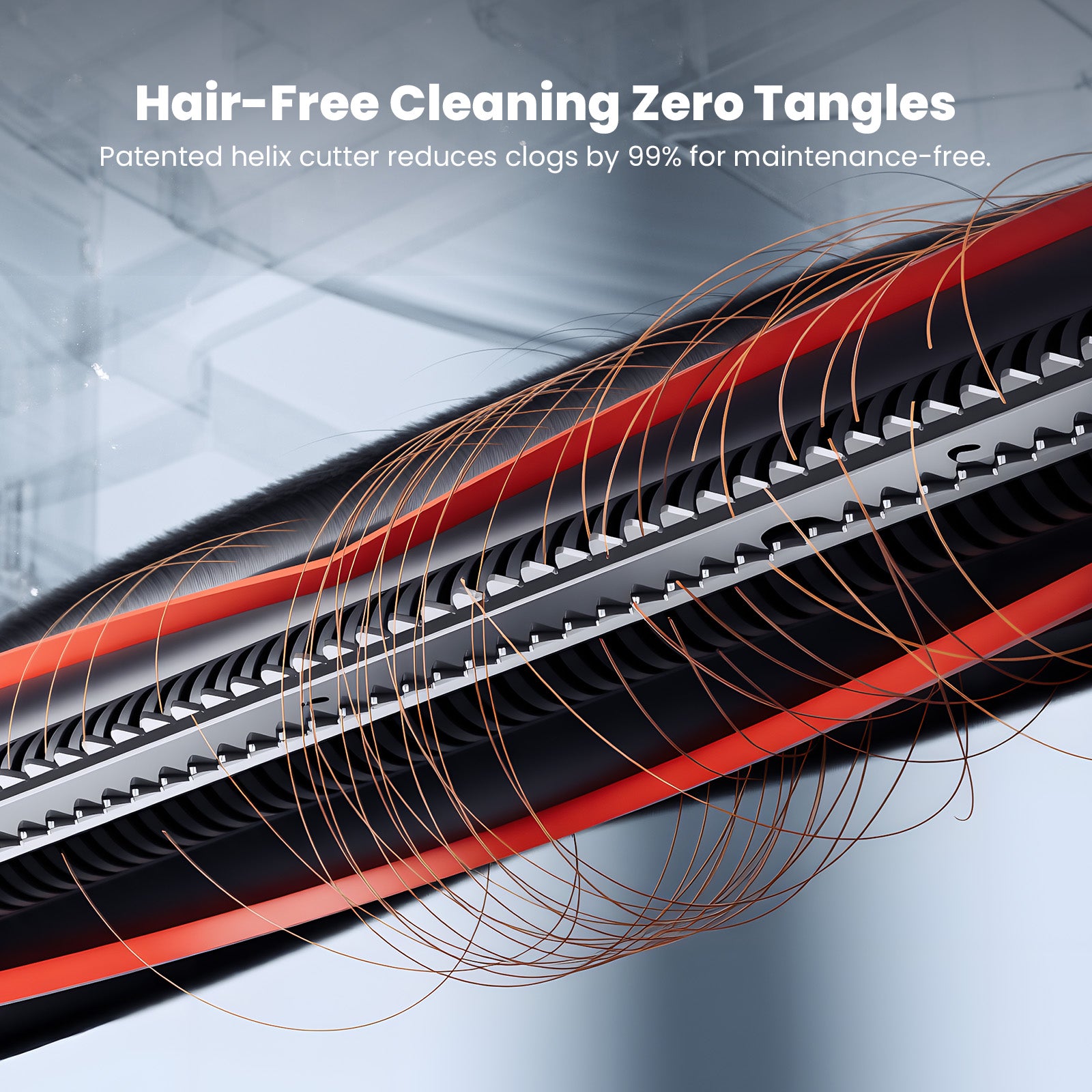 Self-Cutting Roller Brush + Anti-Tangle Edge Brush.